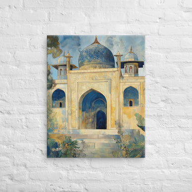 Azure Domes of Serenity – Blue Mughal Palace Canvas