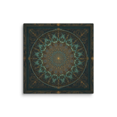 Immerse yourself in the sacred geometry and ornate splendor of “Emerald Radiance.” This masterpiece features a radiant radial pattern inspired by Mughal ceilings, delicately woven with lotus motifs, arabesque scrolls, and shimmering gold accents. Framed within a square border of intricate filigree, the composition evokes harmony, balance, and luxury.