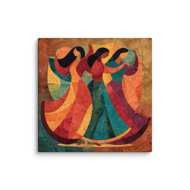 This Gallery-Wrapped Canvas Print comes Ready to Hang, printed with museum-quality inks that bring out every detail and color gradient. Perfect for living rooms, art spaces, and hallways, this piece celebrates culture, femininity, and movement in one elegant composition.