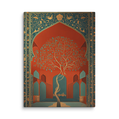 Infuse your home with a sense of timeless beauty through Tree of Eternity, a Mughal-inspired masterpiece that merges architectural grandeur with natural elegance. The golden tree, flourishing within a regal archway, symbolizes growth, resilience, and harmony. Surrounded by intricate floral and bird motifs, the piece evokes the splendor of Mughal palaces and gardens.